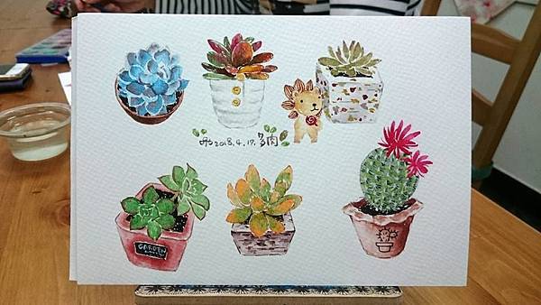 多肉水彩(初階)「原則上一堂課,完成一張畫」 (視構圖複雜程度調整)招生對象:無基礎者。上課方式:選擇以多肉植物為主的圖片做教學(一期共四堂)透過四堂課來學習植物構圖、淡彩色調調色,畫出清新淡彩風。